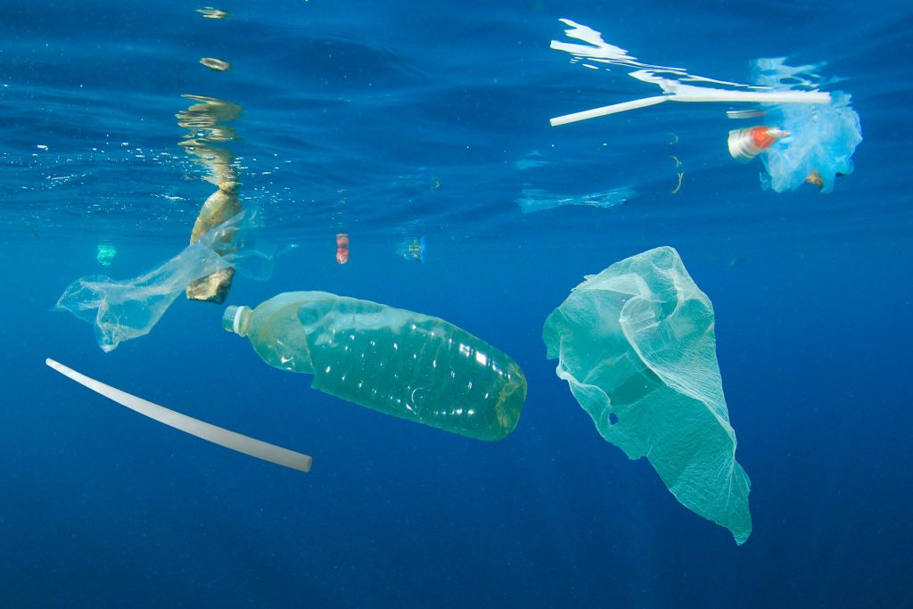 många plastprodukter på stränder och i städer.